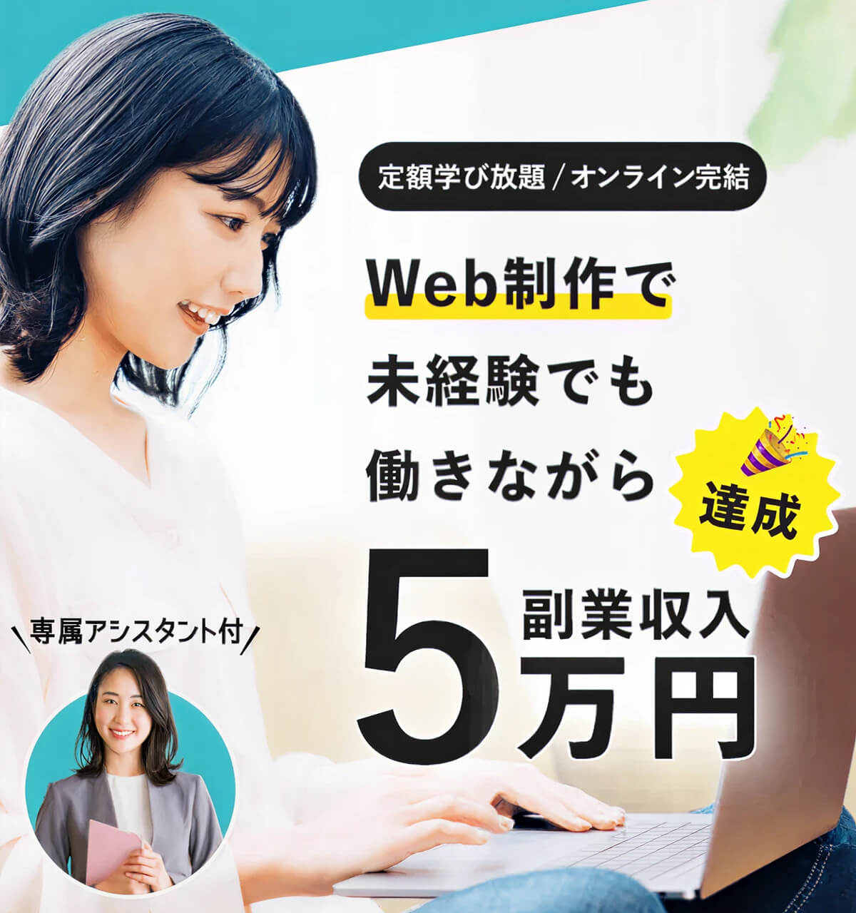 | 副業/フリーランスへの独立支援 | (Webデザイン副業コース) ・ポートフォリオ作成カリキュラム ・コミュニティ限定の副業案件を体験 など |